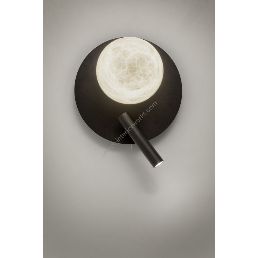 The structure of the wall lamp with reading arm of the Tribeca collection is made of textured black iron and the shade is an alabaster sphere 12cm in diameter, inside which is housed an integrated LED Seoul 4.5W 270lm 2700K CRI>80. The reading arm, adjustable by ball joint, includes an integrated LED Cree 3W 3000K 260lm CRI>80 that is always 'not dimmable’ and has its own on/off switch located at the bottom of the base. This wall lamp exists in two versions depending on whether the LED of the alabaster shade is required to be dimmable or not: dimmable (RG) through TRIAC, with a 220V 350mA driver, or not dimmable, with a 90-264V 350mA driver. In both cases the driver is included and is housed inside the structure. Attention: Each shade is unique and unmatched; since it is a 100% natural material extracted from a quarry, the variety of white, brown and gray veins is random.