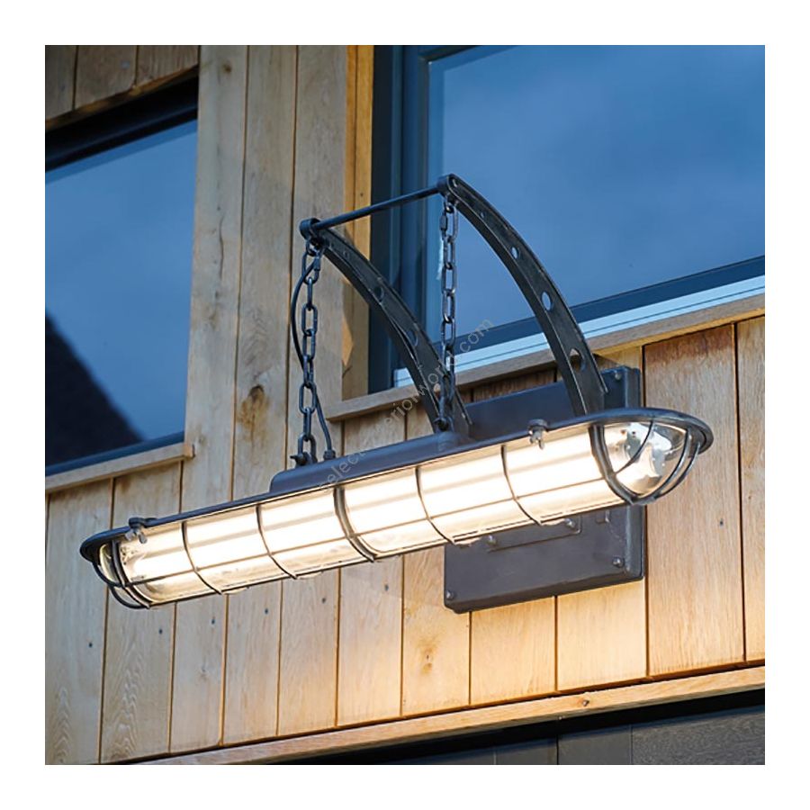 Outdoor wall lamp is made of aluminum, hot-dip galvanized steel and clear glass. A design like taken from the beginning of the industrial century. The luminaires of the category INDUSTRIAL reflect the aesthetical charm of industrial culture. The combination of timeless design, solid steel and authentic details give this series its unique character.