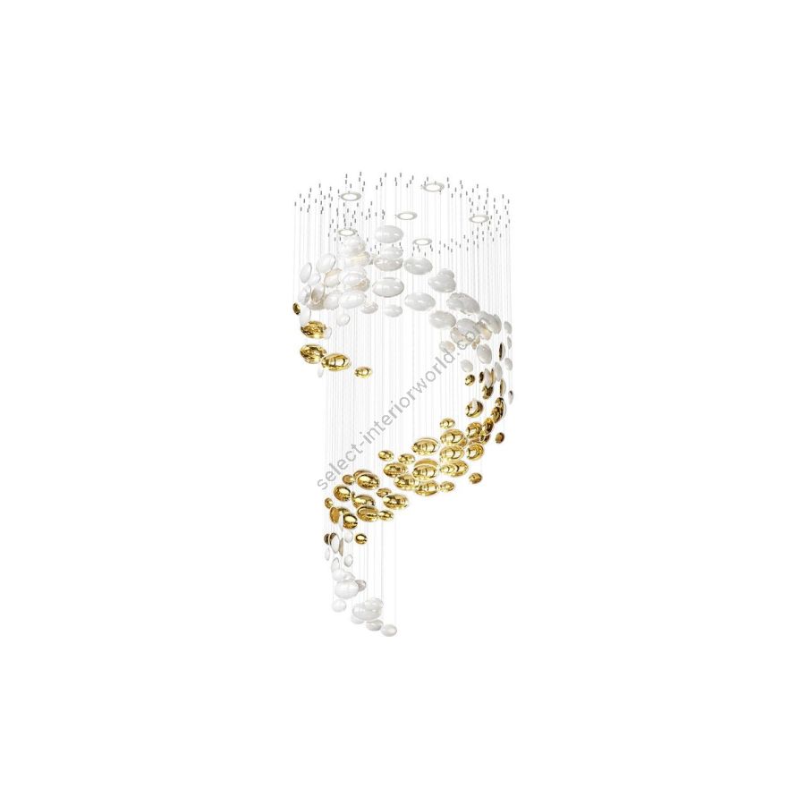 Embodying elegance in its purest form, the Bowls collection showcases a sleek design that creates a fluid wave of light within any interior. Each crystal piece is enhanced by contrasting finishes – one side features a reflective metal nanocoating, while the other is infused with a complementary colour. Suspended in a flowing arrangement, Bowls forms a striking, contemporary statement piece.