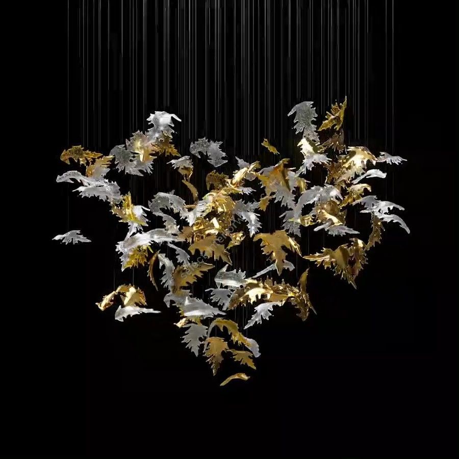 As the warm, gentle breezes of autumn lift and swirl leaves in a mesmerizing dance, the Flying Leavescollection captures this fleeting moment in time. Each piece is crafted from handblown crystal and meticulously shaped to reflect the beauty of autumn in nature. Suspended in a flowing arrangement, the collection embodies the delicate movement of leaves caught in the wind.