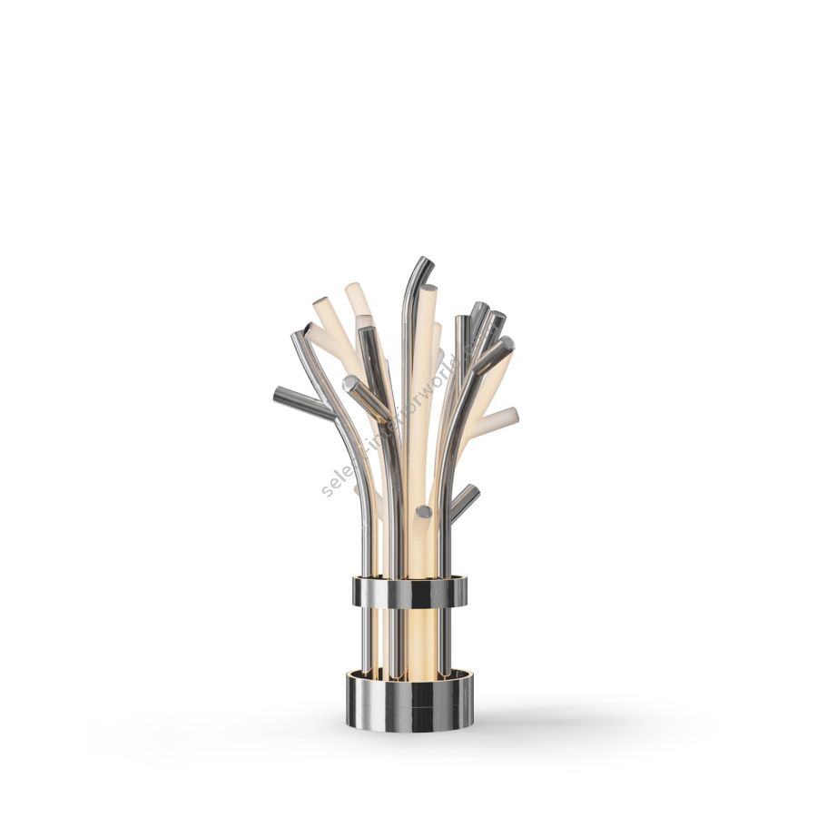 A vertical lighting feature that brings bold presence to interiors. Its upward-reaching structure integrates nanocoated tubes with soft-glowing, sandblasted glass accents, delivering both ambient lighting and a statement design element for lounges, reading corners, or hospitality settings.