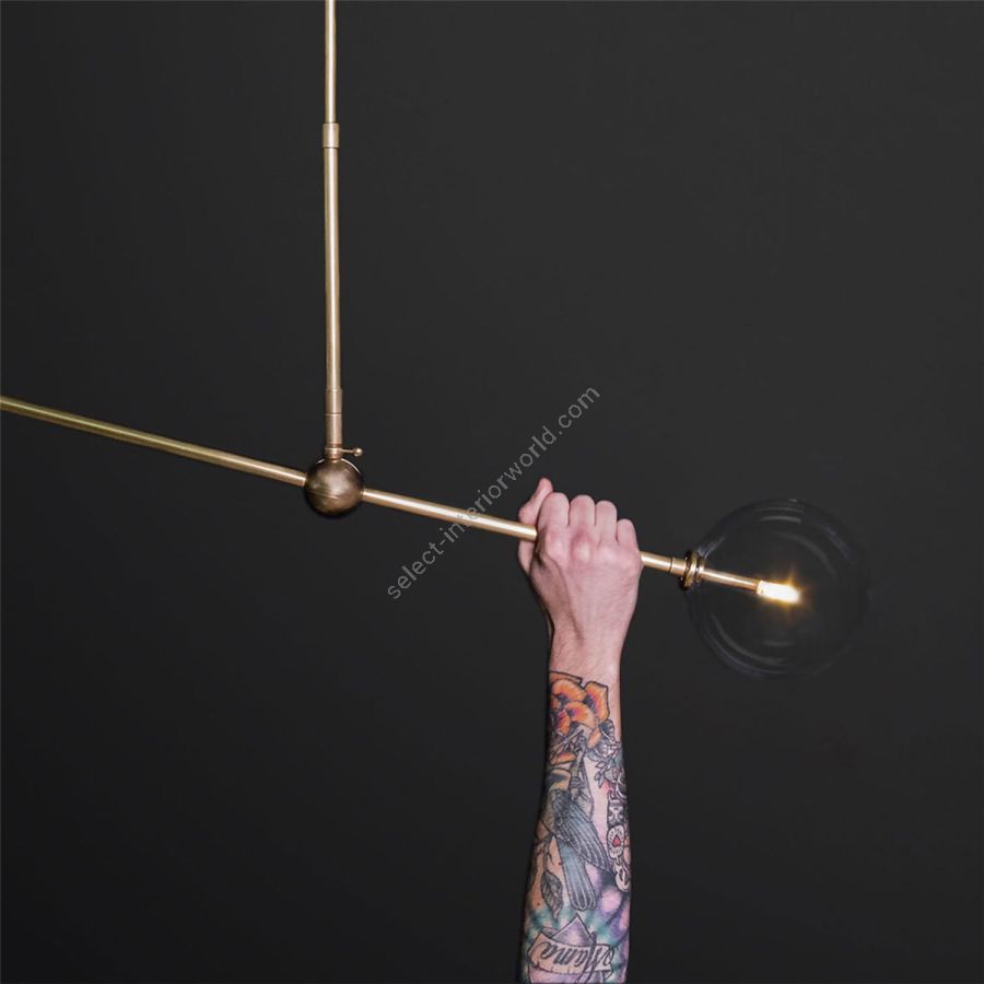 The Balance 200x150 pendant imagines harmony as a process, symmetry in motion balancing the forces of dynamic spaces. The pivoting axis creates motion in a harmonious equilibrium between two different sizes of mouth-blown glass spheres- a visual melody, adjusting to every audience.