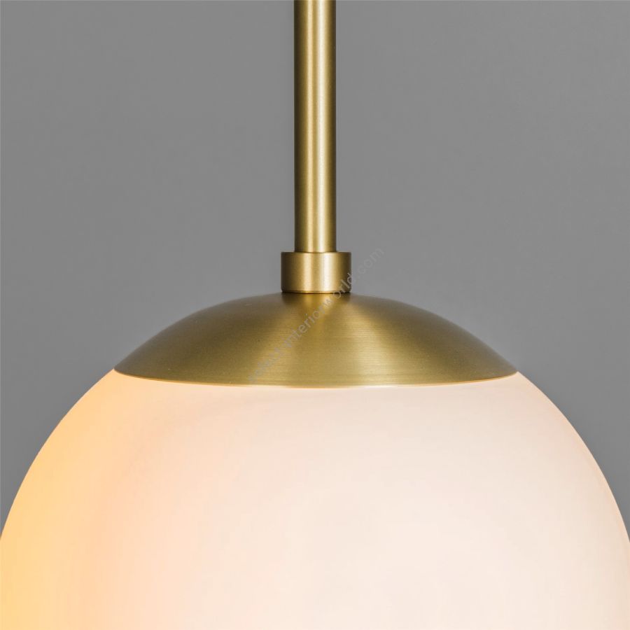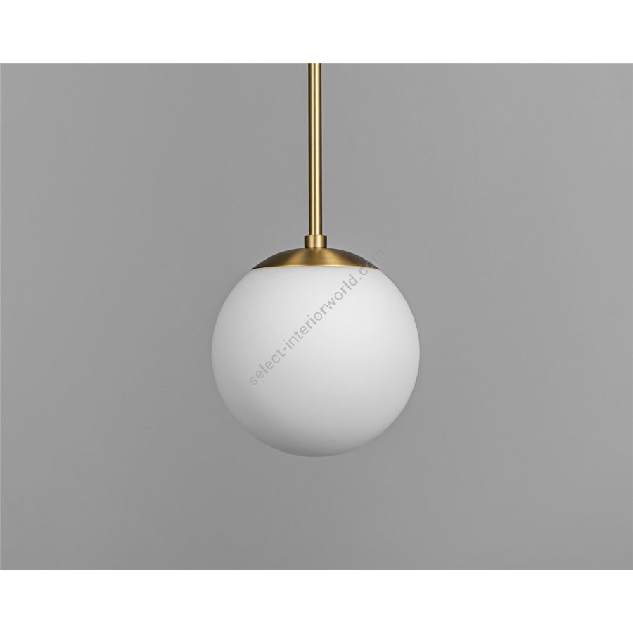 A single globe hangs from a linear brass fixture; a perfect dewdrop. Inspired by the design of classic brasserie lights, the minimalist composition allows the quality of the glass - available in three signature globes - to shine.