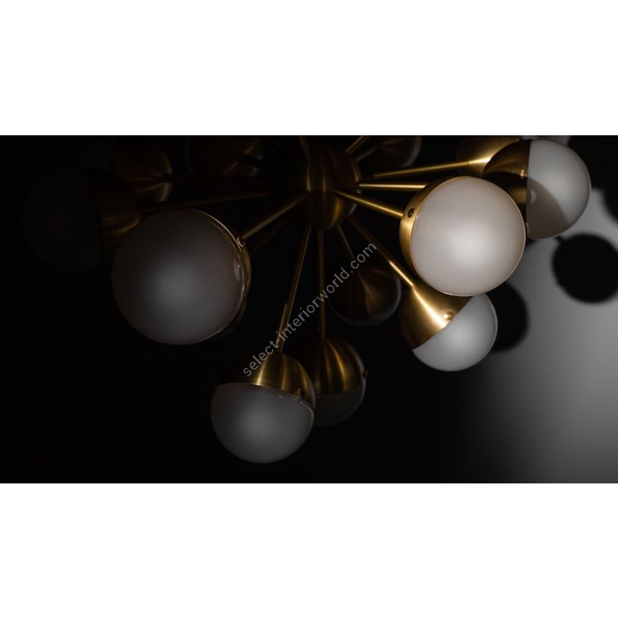 Sparks of light trail brass lines in a circular formation. Radiating out from a spherical nucleus, ten sprightly rods wield illuminated hemispheres, spectacular spatial punctuation.