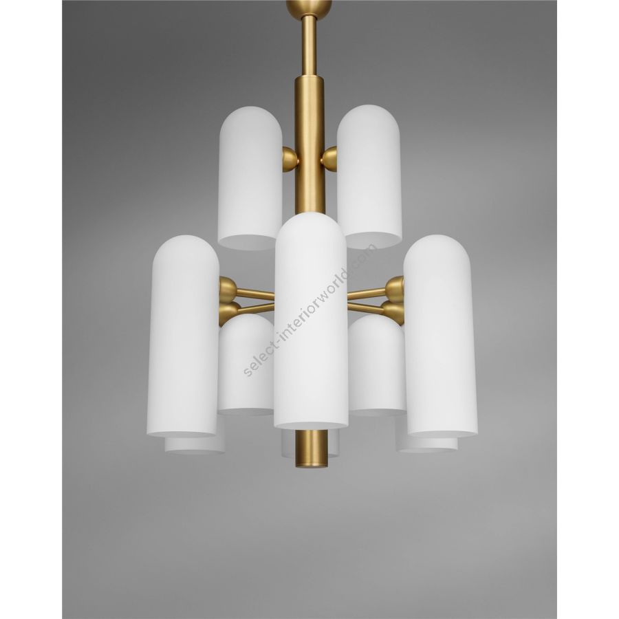 With twelve sculpted frosted curves in varying dimensions, this chandelier is a study in balance and rhythm.