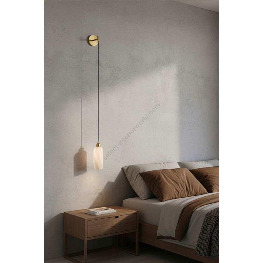 A Canto, from the Italian word for song, signifies a passage within a greater story.A suspension to divide, to steady the pace.This wall-mounted pendant takes in that sense of punctuation. Its solid brass arm extends outward, with a cord guiding a cylinder of glass to rest lightly in the air just shy of the wall.In Opal, Marble Matte, or Dries Ribbon, it settles in as a luminous focal point; a gentle cadence along the vertical surfaces of a room.