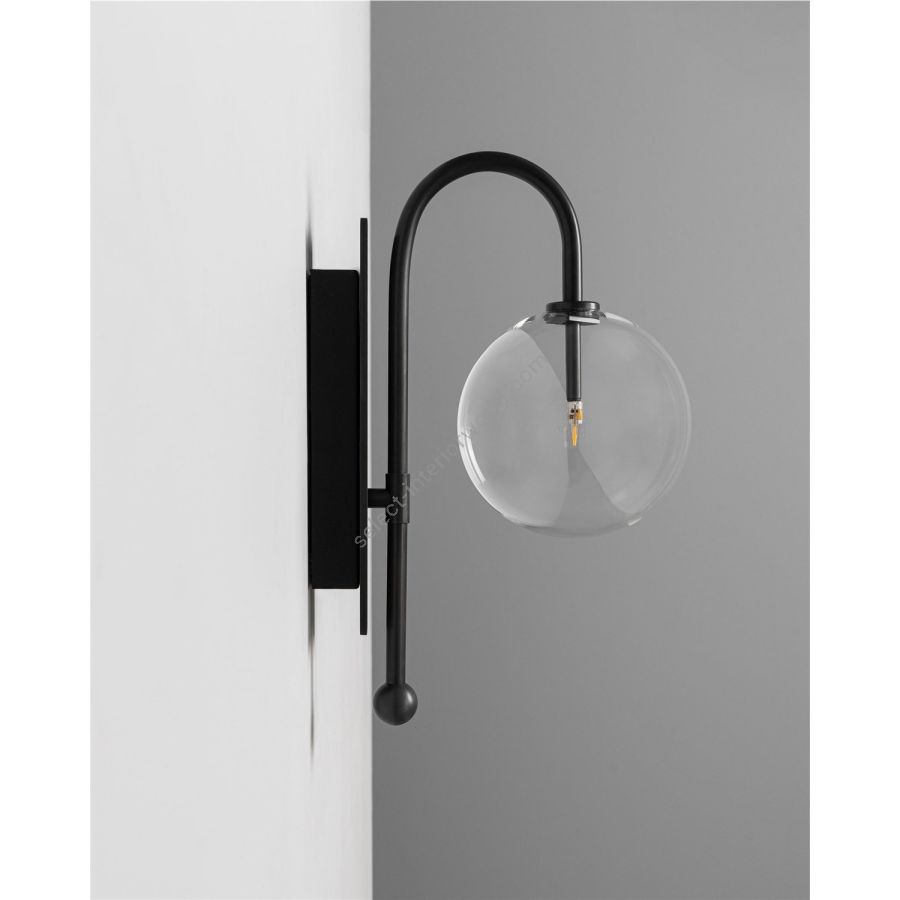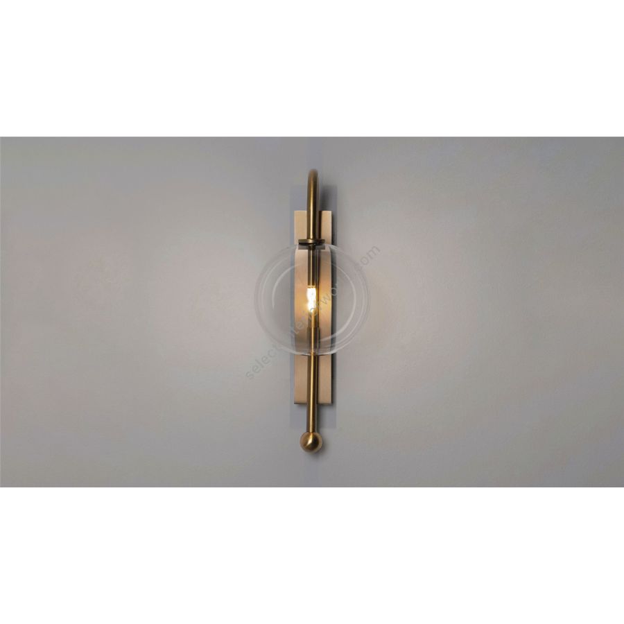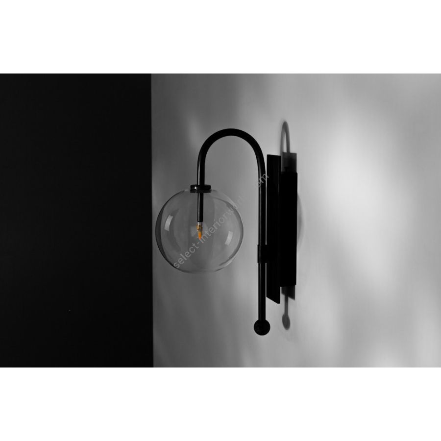 A bubble of mouth-blown glass hangs inverted on an arched stem: a nocturnal flower from the landscape of Naples bay. Shaped by the styles of Italian ‘Bel Design,’ the slender rectangular wall mount lends geometry to the composition.