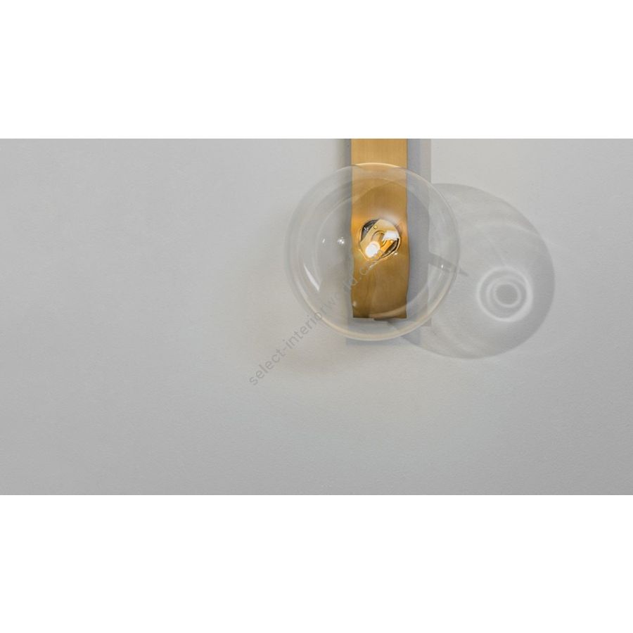 Glass bubbles alight upon a slender rectangle of brass for an essential design. Inspired by the sober compositions of mid-20th century Norwegian artist Ragnhild Keyser, the unique surface curvature of the mouth-blown globes lends a subtle optical distortion to minimalist lines.