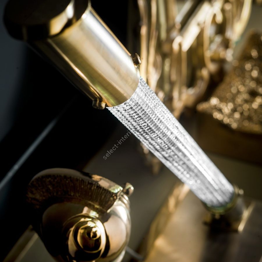 Brass table lamp in golden satin finish and hand cut crystal.