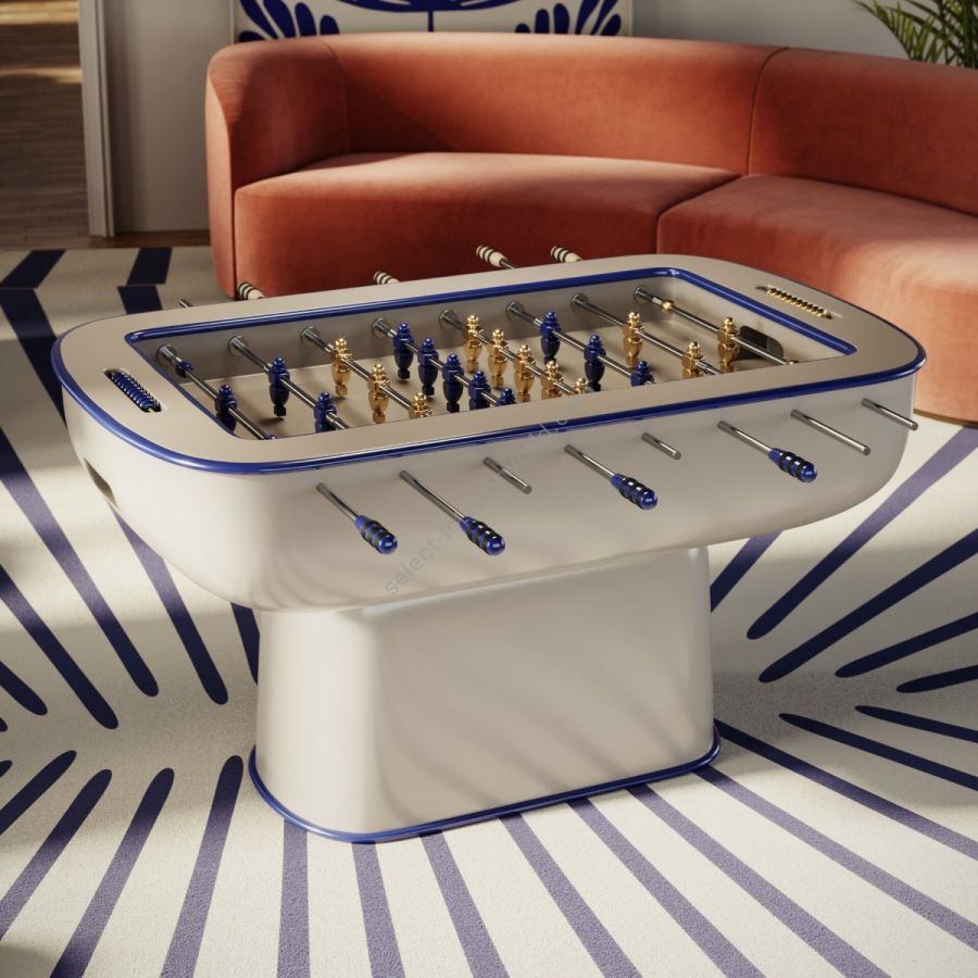 Oskar Foosball Table is proposed in glossy lacquering to enanche its shape. The playing field is in back lacquered tempered glass. The players are in steel, available in 4 finishes or even lacquered.