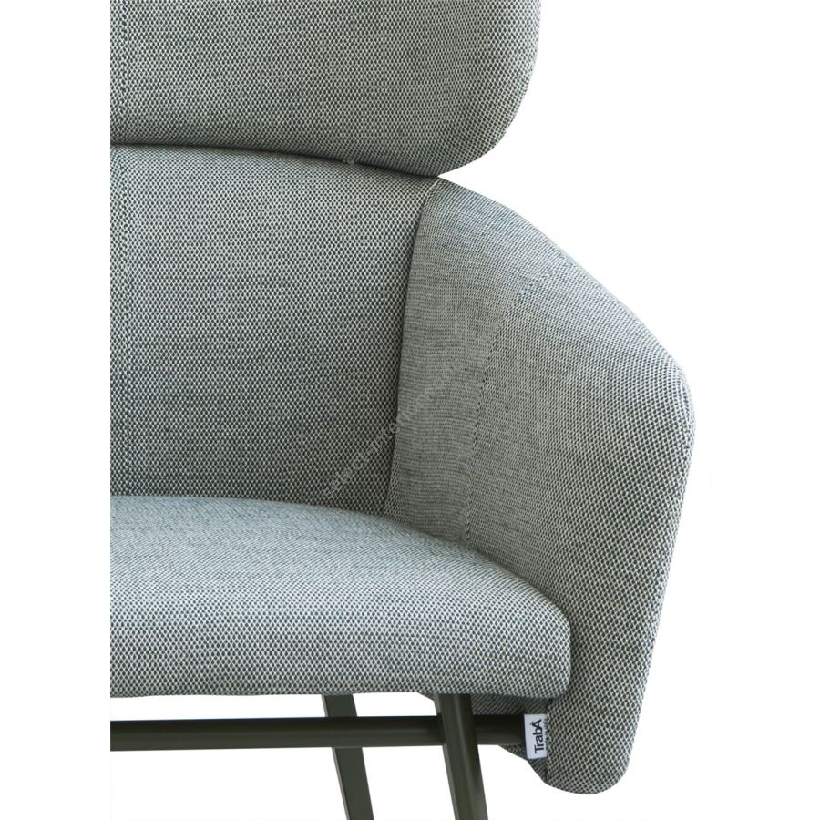 The deep, rounded seat encourages relaxation and conversation. The perfectly balanced volume of the body matches impeccably with the characteristic support frame, thus redefining the typical 'tub' chair. The internal plywood body and the polyurethane and Dacron upholstery, flanked by a beech frame, provide excellent comfort. Balù comes in many colour variations and neutral or tone-on-tone shades, in line with the collection colours.Balù is a reassuring presence and a perfect addition to an imposing dining area with a keen eye for design. This versatile seat can be used in any space, such as meeting rooms, small conference rooms and reading rooms, as well as domestic environments such as living rooms, study areas and bedrooms, which require performance combined with comfort and a strong personality.The Balù chairs, available in a variety of finishes and upholsteries, may be freely combined together, both at home and in public areas.