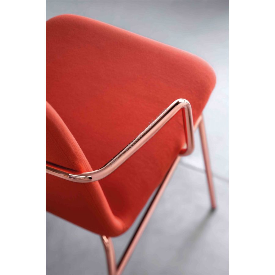 The BARDOT MET TU version stands out for its elegance and brightness, which amplifies its stylistic figure with new structures, new pastel shades and vibrant colors, and refined and contemporary finishes.The structure is lightened with clean legs thanks to the use of the metal rod. A pleasantly soft and graceful design, that of the new Bardot Collection, with a 1950s flavor, made up of full volumes, rounded lines, rounded corners and in which you can feel a singular overall harmony.With a wide range of coatings, fire-retardant fabrics, wools, velvets, leather or eco-leather, which make Bardot suitable for both domestic environments - kitchen, dining room, study - and larger contract contexts.