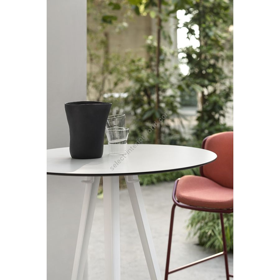 A collection of imposing dining tables with a regular, rounded top and trestle legs reminiscent of workbenches and the archetypal table. Pleasantly minimal in look, they feature calibrated dimensions, striking textures and a manifest solidity. The colour range comes in different finishes: natural ash, bleached ash, cocoa-stained with an open pore finish, and new colour combinations in pastel shades. The top is in ash-veneered MDF, and the frame in solid ash. The collection includes a square, round and rectangular table.