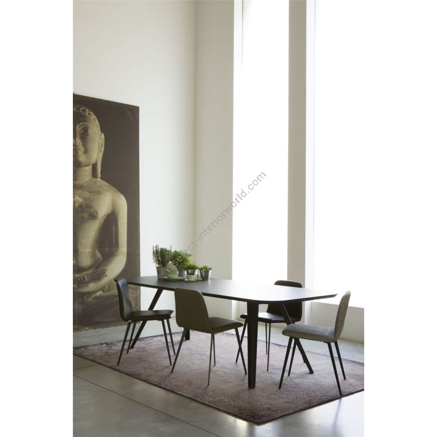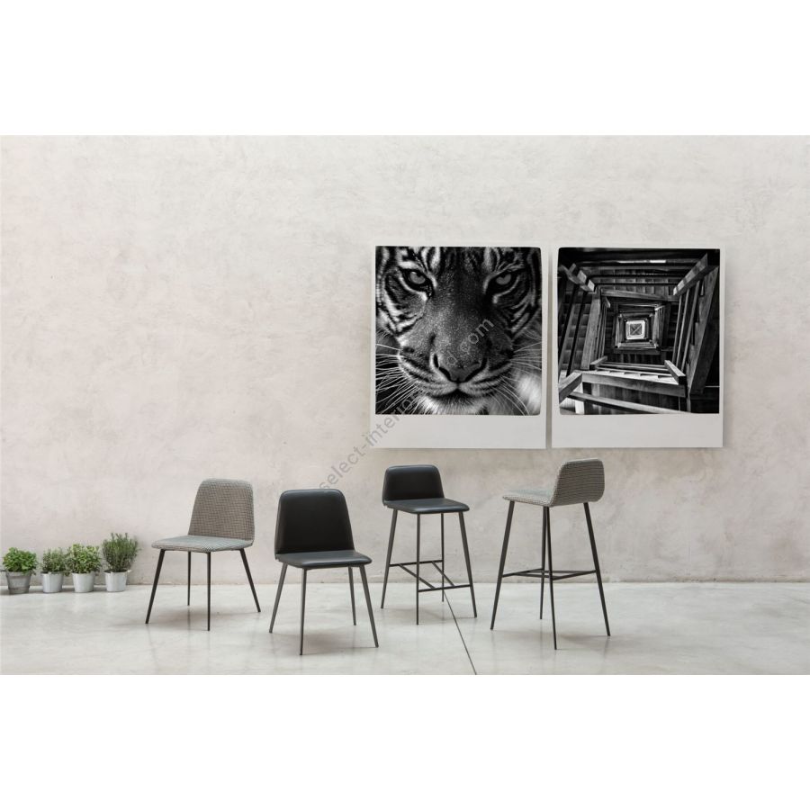 Always in line with the 1950s, here is the new version of Bardot with structure and legs in lacquered metal in different colors. The overall vision created by the harmony of the rounded shapes, the full volumes and the soft but minimal design is recreated in a more rock, metallic version, thanks to the structure that lightens the seat. A wide range of colors for the upholstery, upholstered in velvet, or leather or eco-leather, makes it suitable for both the home, kitchen, dining room, study, and contract environments. A transversal proposal to create welcoming domestic settings or furnish contract spaces.