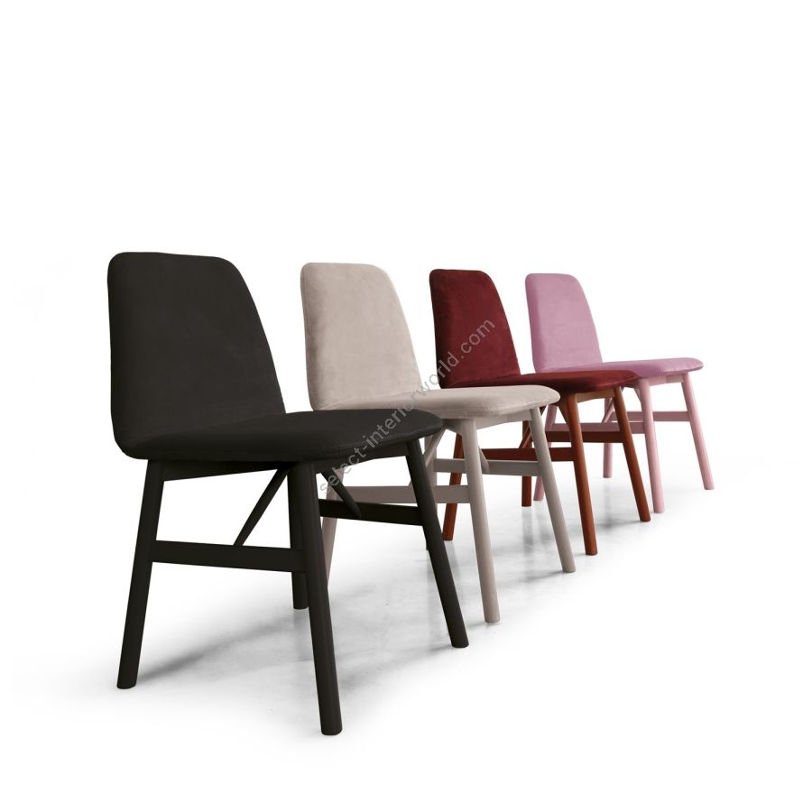BARDOT extends its style to include new frames and new pastel and vibrant shades.The new '50-style Bardot Collection is pleasantly soft and graceful in design, with solid volumes, rounded lines and a remarkable overall sense of harmony.Available in a wide range of upholsteries, including fire-retardant fabrics, wool, velvet, leather and faux leather, Bardot is the ideal choice both at home - in the kitchen, dining room or study - and in public spaces.The rounded wooden legs of the stool and of the armchair with padded armrests echo the soft lines of the original Bardot chair.The new lounge chair, with its more generous dimensions, fits gracefully into public environments, such as bars, restaurants, halls, waiting rooms, and informal meeting rooms.