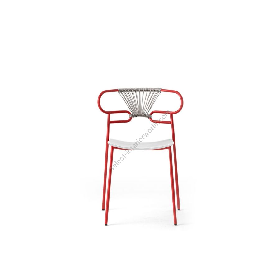 | Description: | Stackable structure in painted metal or in polished chrome, polished black chrome, polished brass, seat in ash, back with colored rope weaving. |