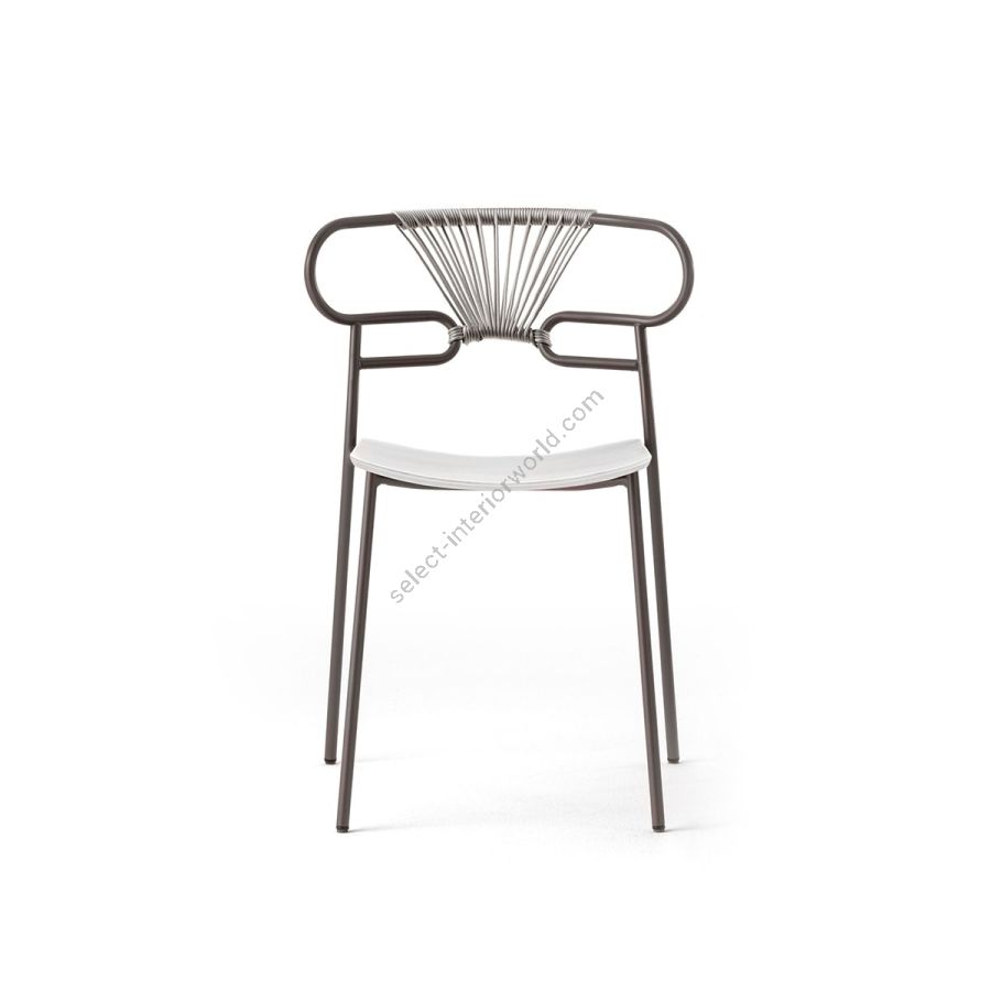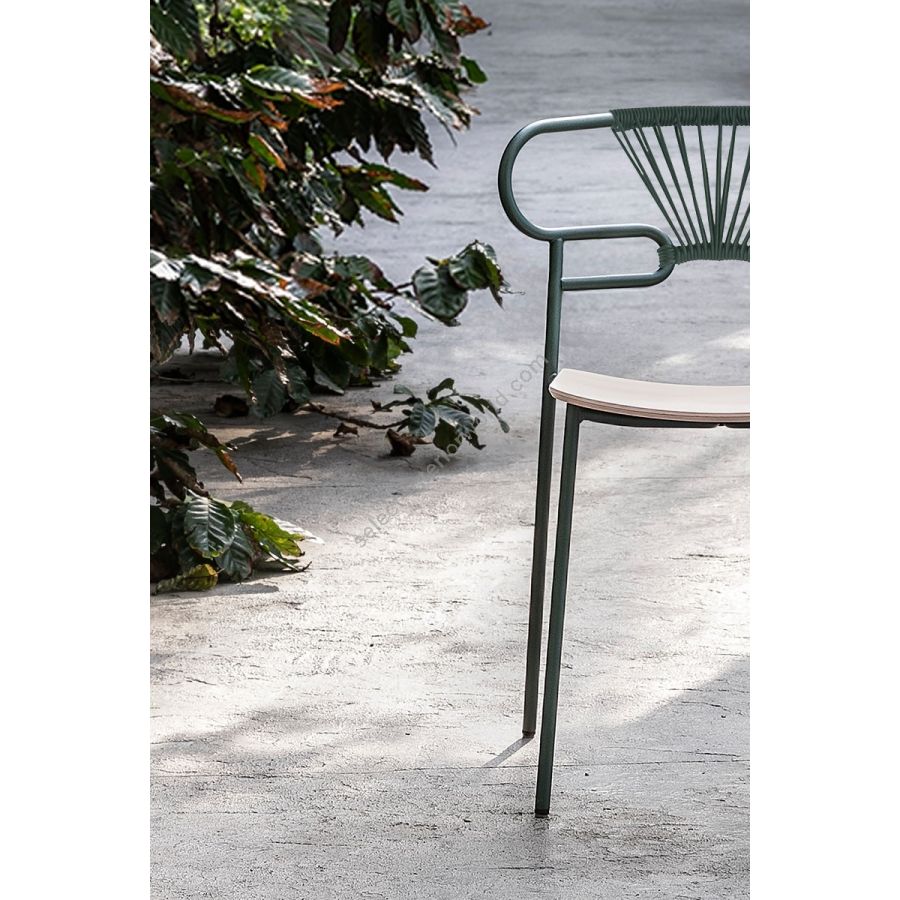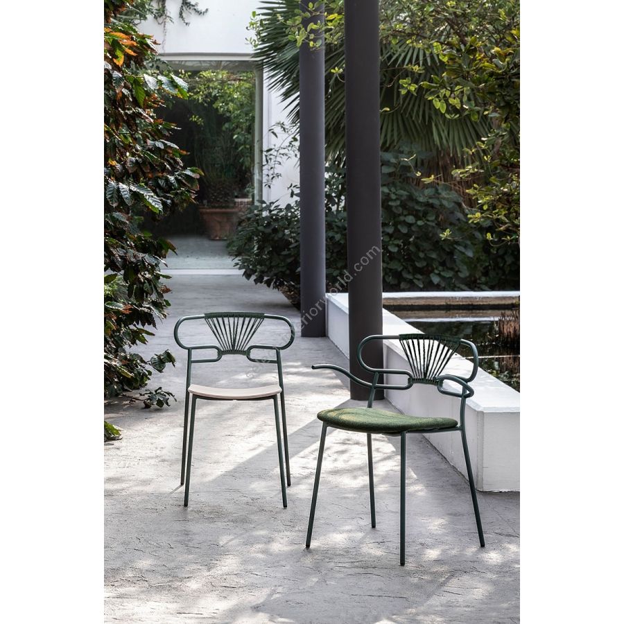 The Genoa chair collection, by talented young designer Cesare Ehr, featuring a stool and a chair with armrests, is also available in an outdoor version. The distinguishing element is the ‘one-line’ backrest, obtained by curving a single metal tube which - with its virtually endless wavy line, also extended to the armrests in this new version - is an elegant addition to every space, bringing a sense of lightness.The outdoor version of the chair will be presented at Salone del Mobile 2019. With integral body in polyurethane, mass painted in the mould, it is also available with a woven backrest in coloured rope to enhance both its look and the level of comfort provided.The frame in powder-coated tubular metal comes in a wide variety of colours; the slightly curved seat - for the indoor versions - is in ash wood (left au naturel or painted) or upholstered with various fabrics, leather or eco-leather.