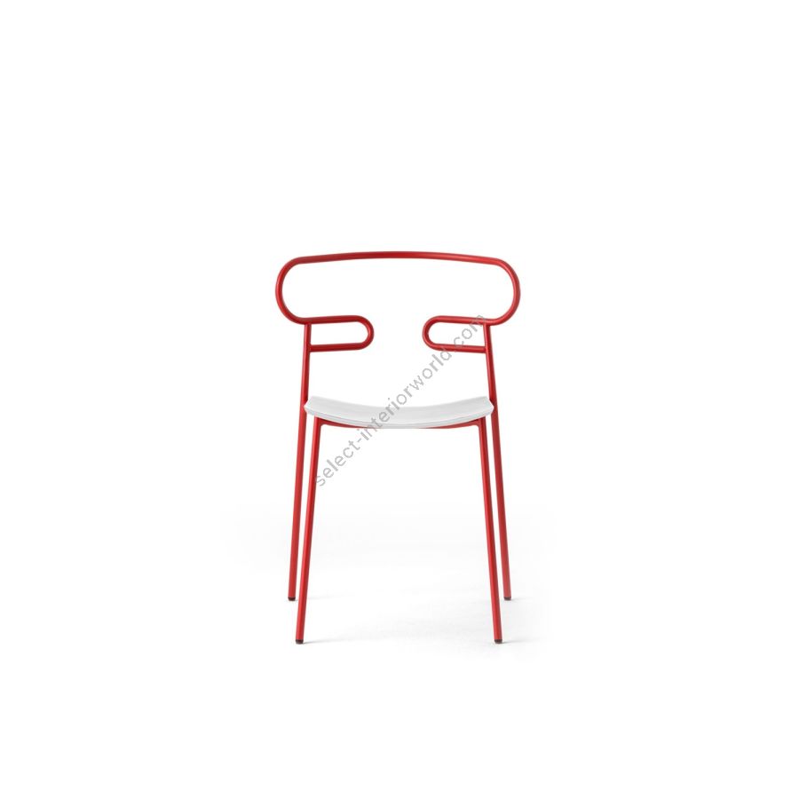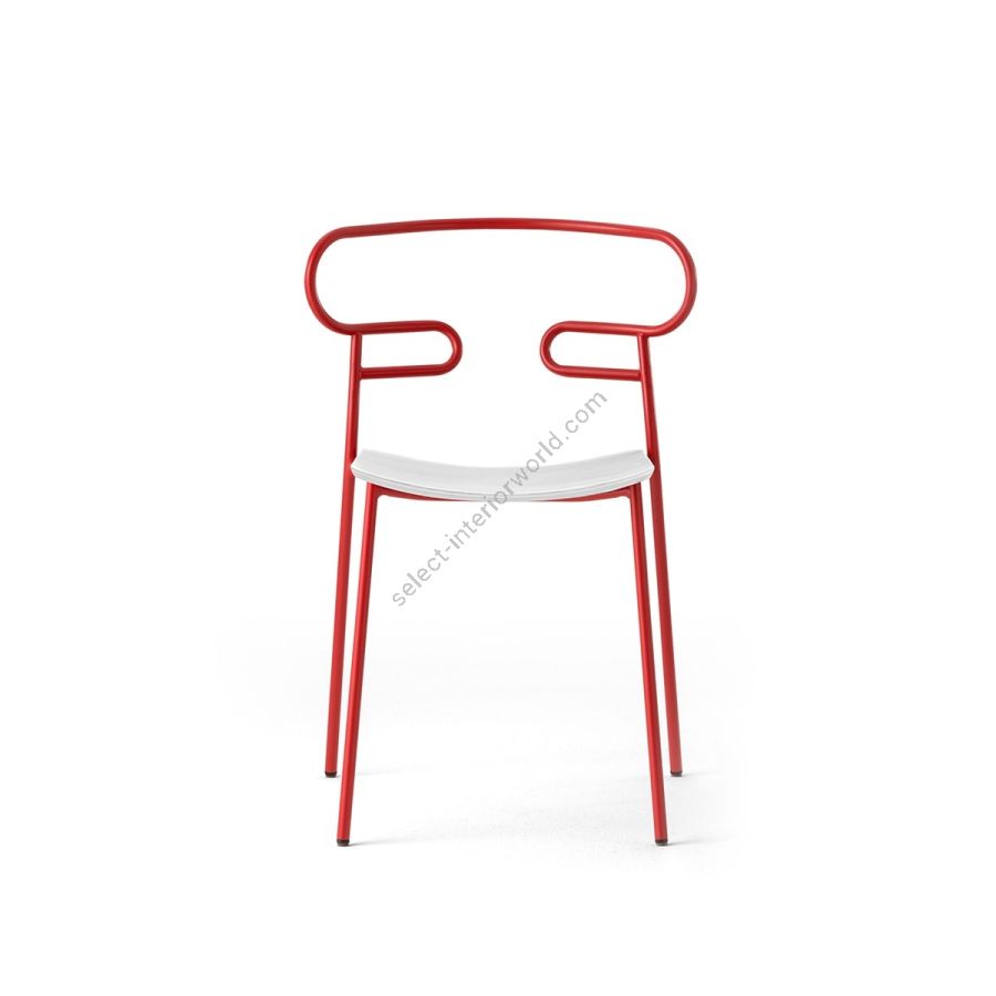 The Genoa seating collection, designed by the young Cesare Ehr, is expanding with the stool and chair with armrests versions, also in the outdoor variant. The characterizing element is the 'one line' backrest, obtained from the curvature of a single metal tube which - with its virtually infinite sinuous line, extended into this new version in the armrests - fits discreetly into any space, connoting it with lightness. At the Salone del Mobile 2019 the outdoor version of the seats is presented - with a body in integral polyurethane painted in the mass and in the mold - also available with a backrest woven with colored rope, which enhances, in addition to aesthetics, the level of comfort. The powder-coated metal tubular structure is available in a wide range of colors; the slightly curved seat - for the indoor versions - is in ash wood (natural or painted), or padded with different fabrics, leather or eco-leather.