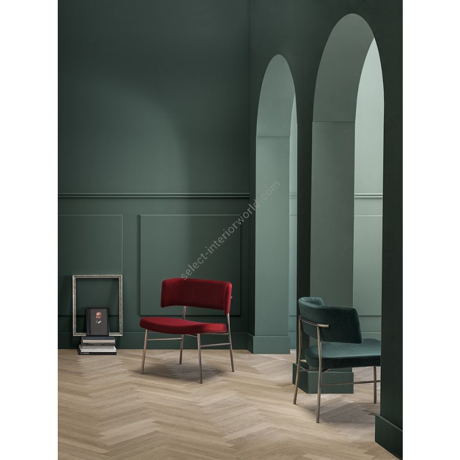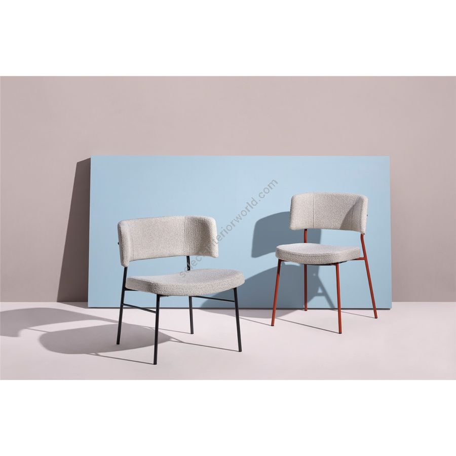 Comfort, an ergonomic shape and a hardy structure are the characteristics of the Marlen design, the new Trabà chair designed by EP Studio.Hints of a Fifties vibe can be glimpsed in the curvature of the backrest - generously padded, like the seat - and in the dynamic, lightweight 4-leg metal rod frame, which becomes bulkier and more retro in the solid ash wooden version.Polished brass or copper add a vintage touch to the colour palette that can be mixed and matched to obtain the perfect chair for residential and tailor-made contract projects alike.
