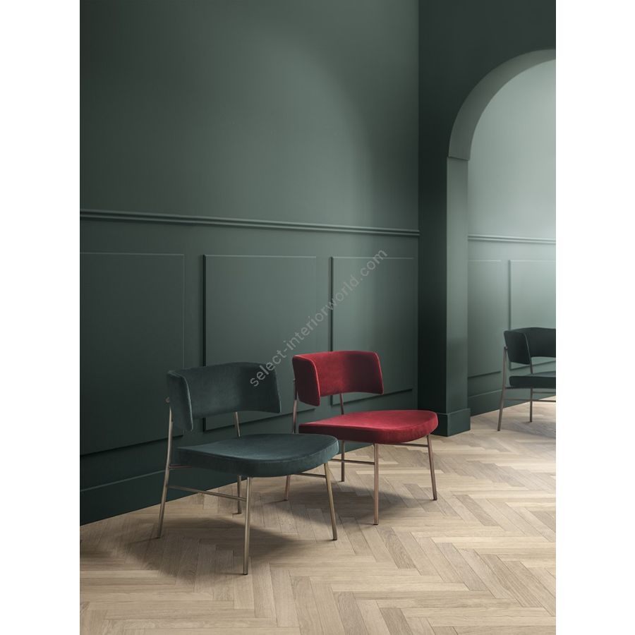 | Description: | Struttura in metallo verniciato o in cromo lucido, cromo nero lucido, ottone lucido, sedile e schienale imbottiti. |