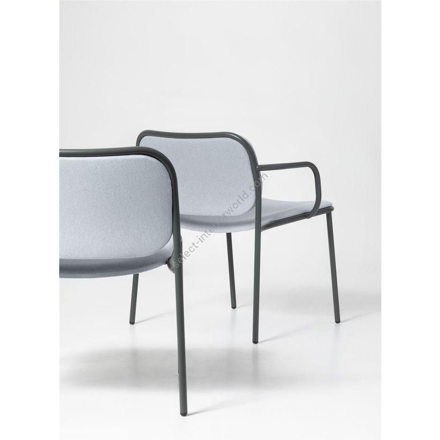 The textures and variety of colour in the fabrics, the quality and tactile experience of leather, and the elegance and softness of velvet combine with metal frames in different tones to give shape and style to a complete collection: a chair with and without armrests, a lounge chair with and without armrests and a stool in two heights. With customisable upholstery options for seats and backrests, Metis Pad brings coordination to different interior spaces, while ensuring every room has its own personality and textures.