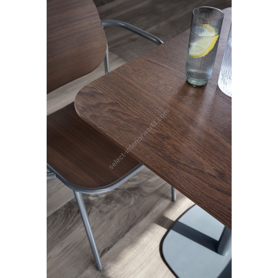 A complete collection for modern spaces inspired by 1950s Scandinavian simplicity. The metal frame with curved lines, customisable in different colours, is combined with the seat and backrest in ash, oak or heat-treated oak. The chair with or without armrests, the lounge chair with or without armrests and the stool in two heights are the models in the Metis Wood range that bring a vintage atmosphere and timeless style to any interior space.