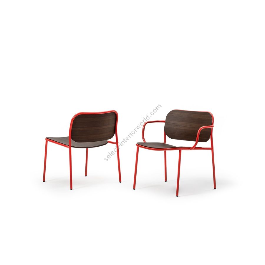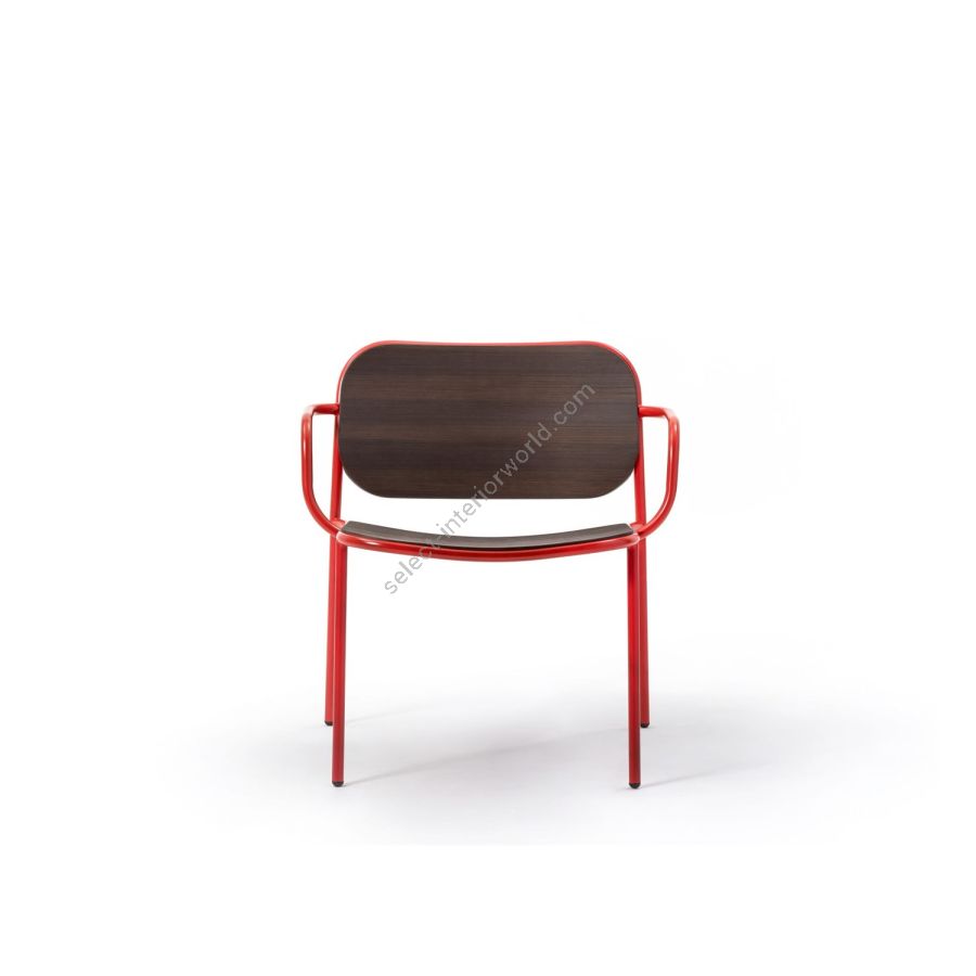 | Description: | Lounge chair with structure and armrests in painted metal. Seat and back available in ash, light oak, heat-treated oak or black aniline. |