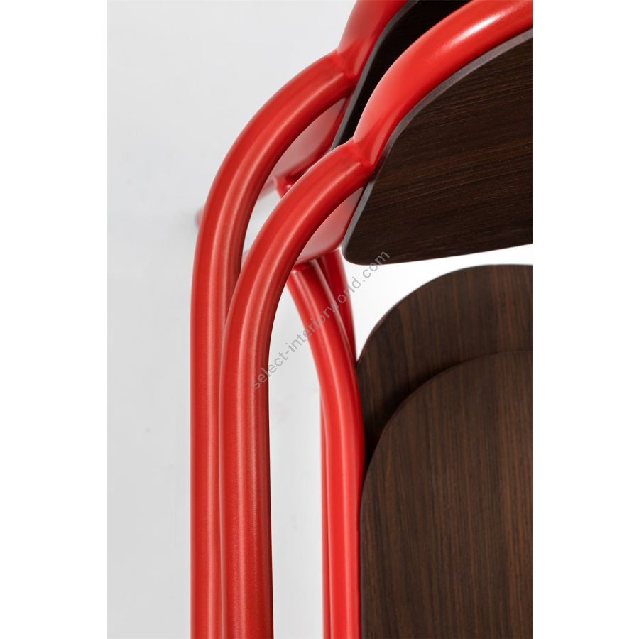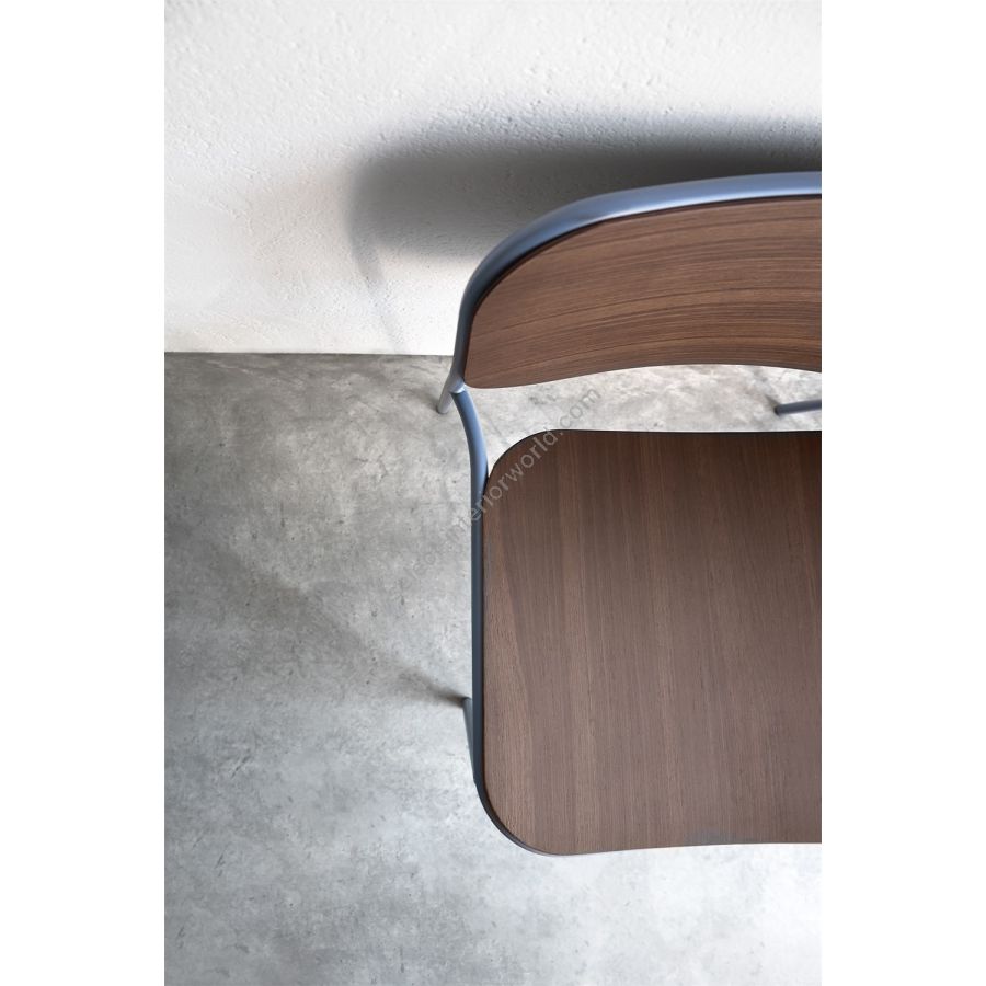 A complete collection for modern spaces inspired by 1950s Scandinavian simplicity. The metal frame with curved lines, customisable in different colours, is combined with the seat and backrest in ash, oak or heat-treated oak. The chair with or without armrests, the lounge chair with or without armrests and the stool in two heights are the models in the Metis Wood range that bring a vintage atmosphere and timeless style to any interior space.