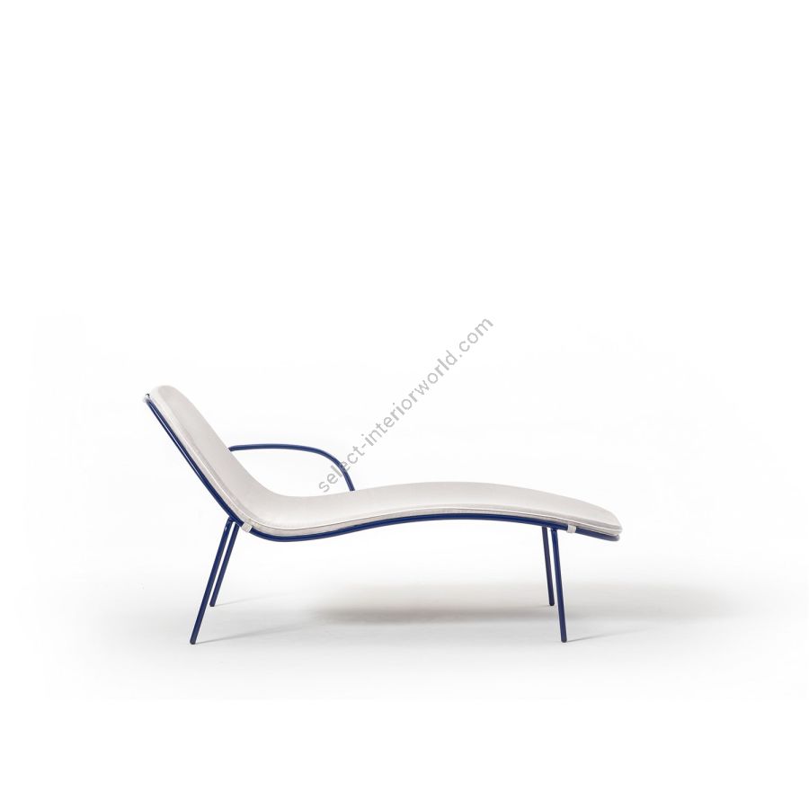 On a sun terrace, by the pool, in a spa, Sunshine Sunbed is the perfect lounger for an oasis of well-being, whether indoors or outdoors. It's sleek, curvy design facilitates relaxation and comfort. The painted metal frame is available in a variety of colours and is completed by an upholstered cushion with a removable cover in a matching or contrasting colour. Sunshine Sunbed is available without armrests or in an original single armrest version that provides support and ease of movement at the same time.