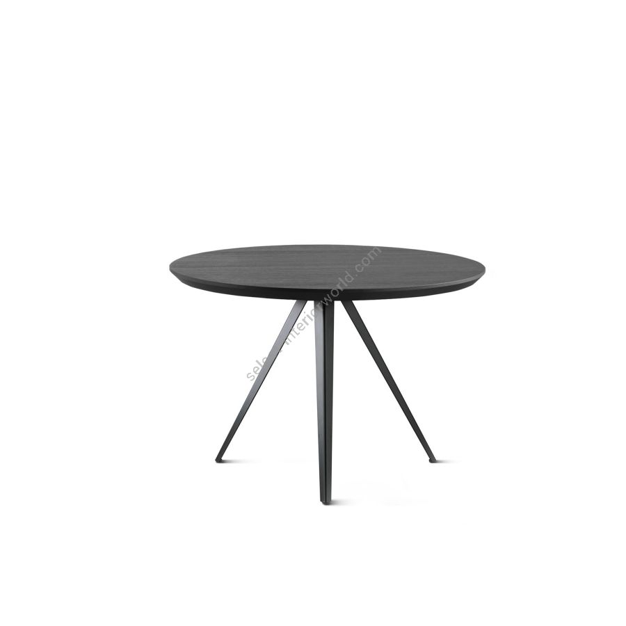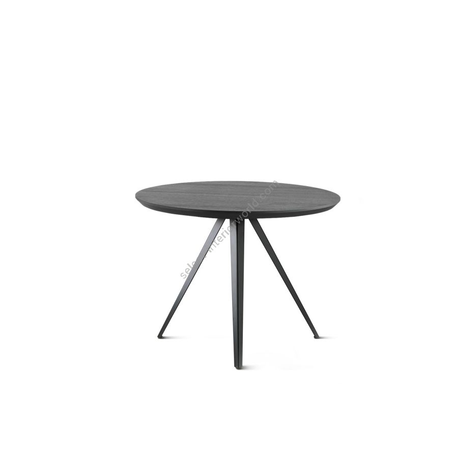 Two new solutions for the AKY table collection, which is enhanced by a tête à tête variant: you can choose between a square or round top, for intimate breakfasts in public environments or to personalise small living spaces. AKY is supported by legs with central meeting point available in wood, combining solid and fluid shapes, or metal, to provide the table with both ascending tension and lightness.