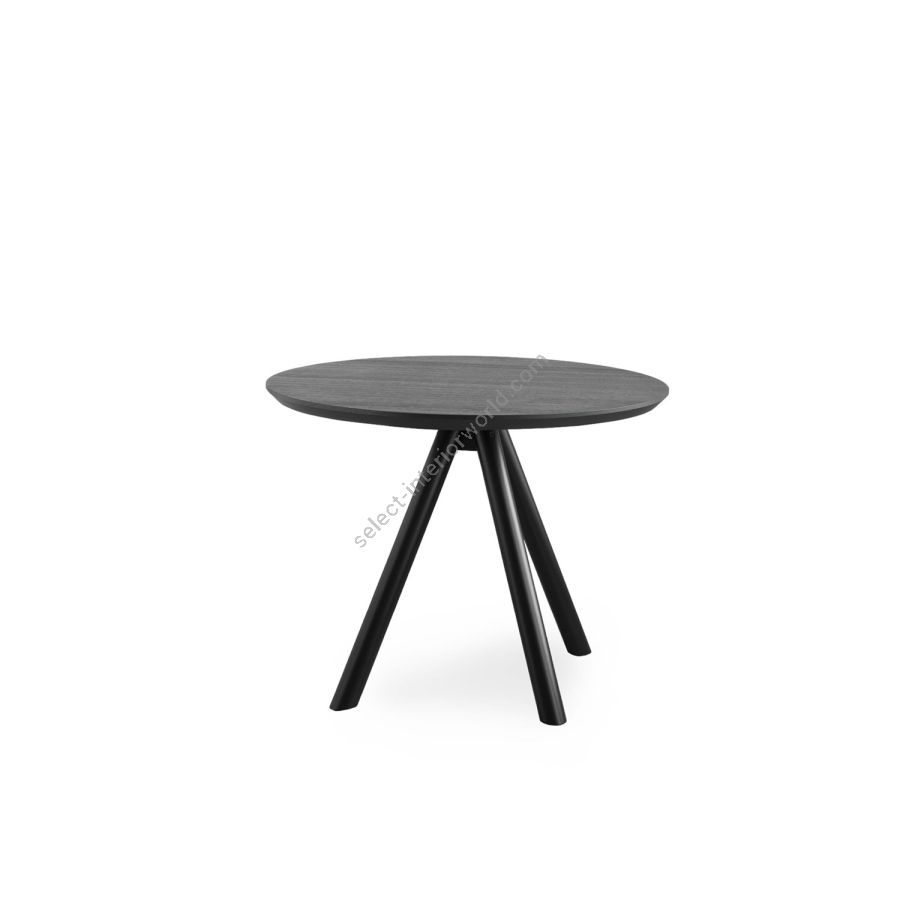 Two new solutions for the AKY table collection, which is enhanced by a tête à tête variant: you can choose between a square or round top, for intimate breakfasts in public environments or to personalise small living spaces. AKY is supported by legs with central meeting point available in wood, combining solid and fluid shapes, or metal, to provide the table with both ascending tension and lightness.