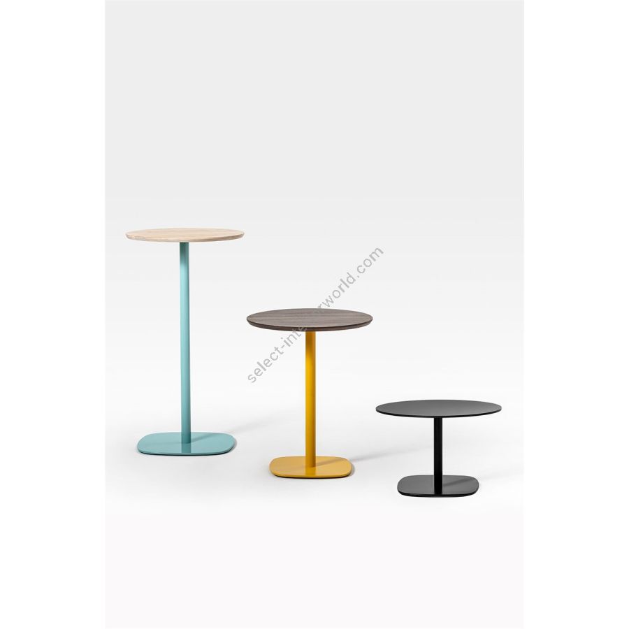Chairs, lounges and stools: every type of seat can count on a functional and at the same time stylish coffee table. Round Table is available in three different heights and has a metal base that can be customized in a wide range of colors or in a stainless steel or chrome finish, which can be combined with different sizes and materials of the tops. A versatile furniture perfect for the contract, because it allows you to furnish more situations and settings by varying heights and color combinations but maintaining the recognizability of the design.