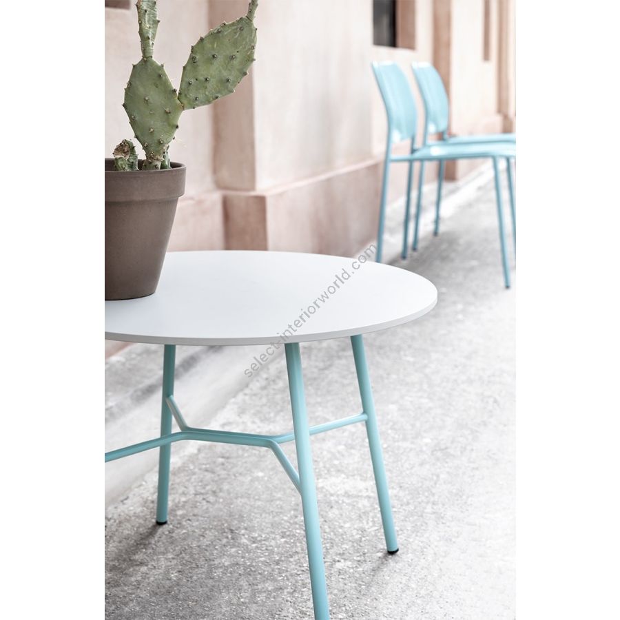 Whether it’s square, rectangular, oval or round, Yuki Little Table comes in several shapes, sizes and finishes. The painted metal base in standard or special colours can be combined with a HPL, marble or glass ceramic top for living spaces in the home and lounge areas in offices and hotels. Numerous options mean that coffee tables of different heights and sizes can be placed in the same setting for creative compositions, even outdoors.