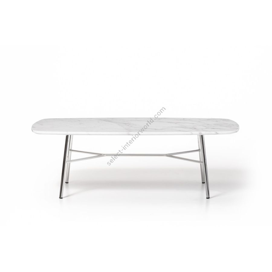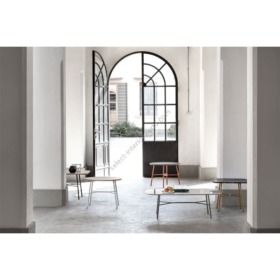 Description:Coffee table with Painted metal frame, top in ash wood, hpl, ceramic glass or marble. Available in OUTDOOR version.