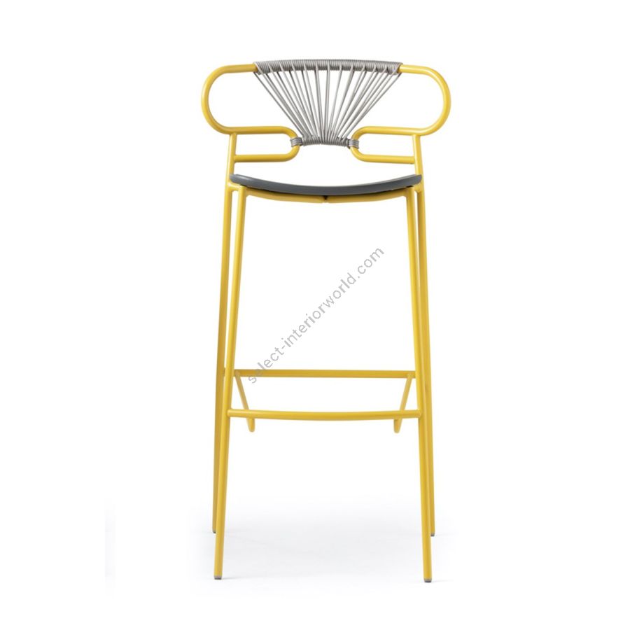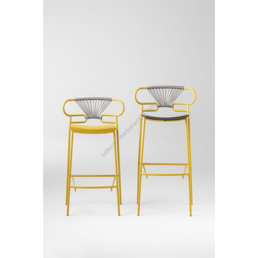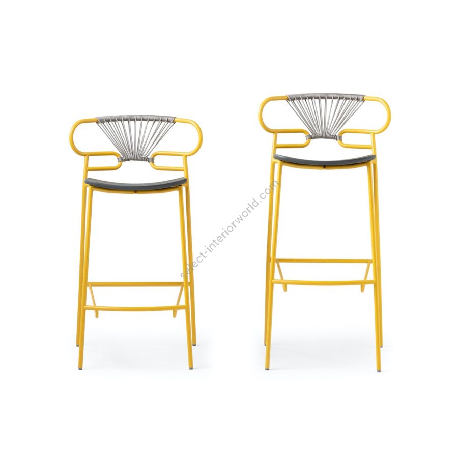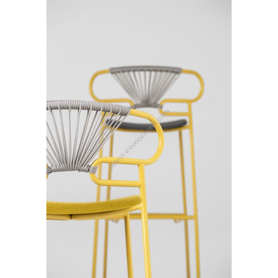 | Description: | Stool with painted metal frame, ash seat, backrest with braided color rope. Available as well in OUTDOOR version. |
