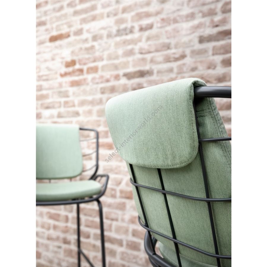 Bringing comfort and style to a snack counter in the kitchen or a public hospitality area, Skin Stool adapts in height and personality to all settings. The painted tubular metal shell can be teamed with full or “light” upholstery options, available in a wide range of fabrics, leathers, eco-leathers and velvets to create tone-on-tone or contrast combinations. As the name suggests, Skin Stool is a second skin for indoor, outdoor and hybrid spaces like verandas, terrace bars and bow windows.