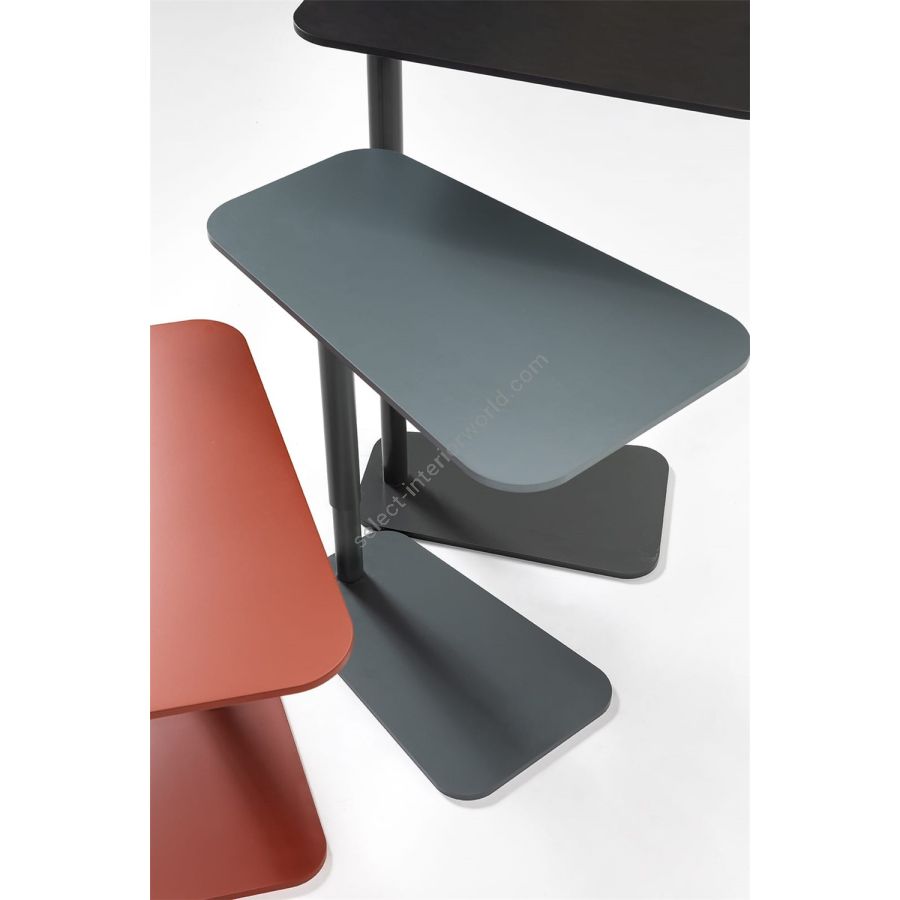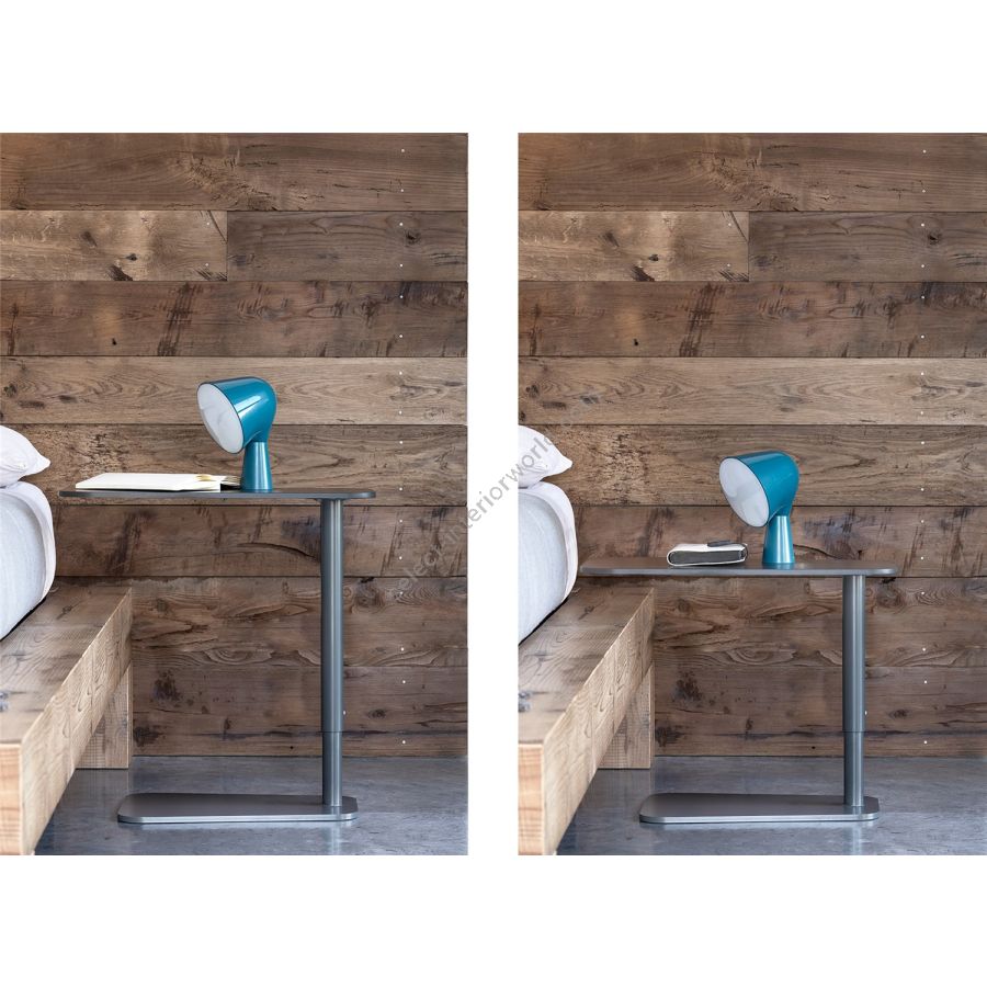 A design coffee table, ideal to be placed next to the sofa or bed in order to have everything you need at your fingertips. The metal structure is available in different standard or special colors and supports the HPL top, to which a retractable black metal service saucer is joined, which creates additional space and can only be extracted if necessary. Jens Side Table adjusts in height comfortably through the new inner gas pump, to adapt to all situations.