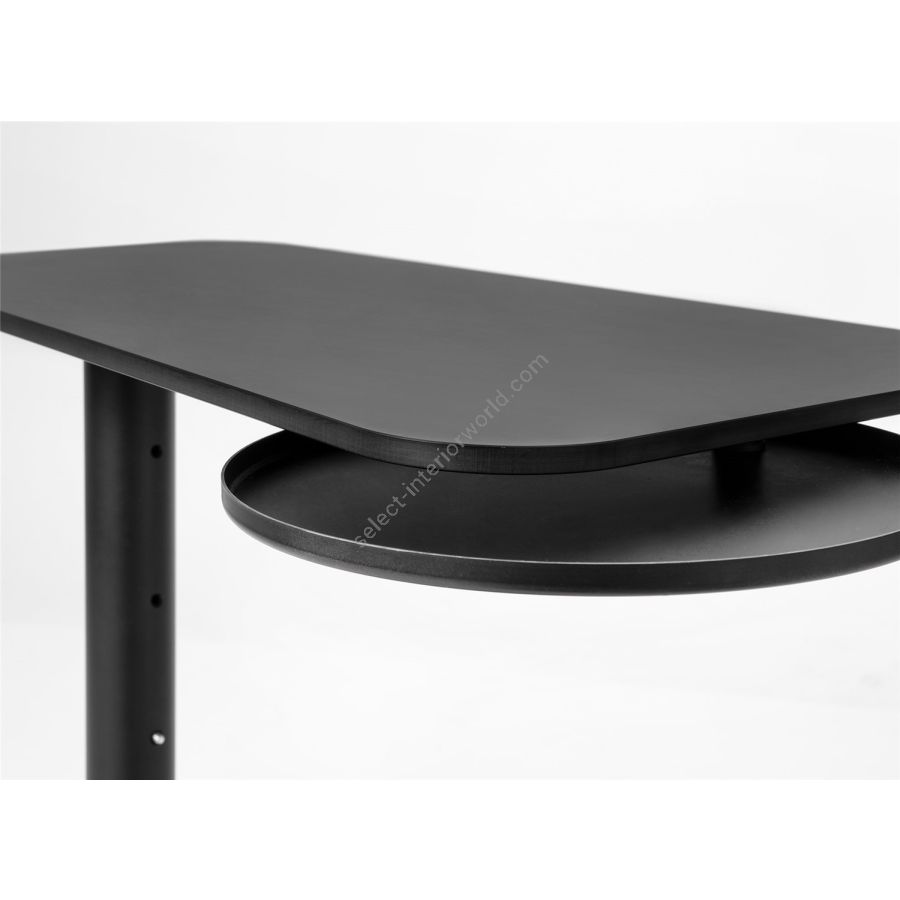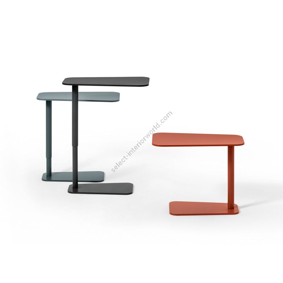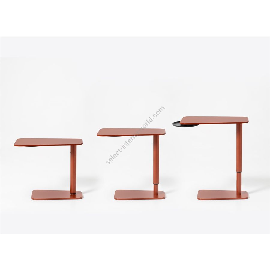 | Description: | Height adjustable side table with gas pump, painted metal structure, HPL top and metal black storage tray. |