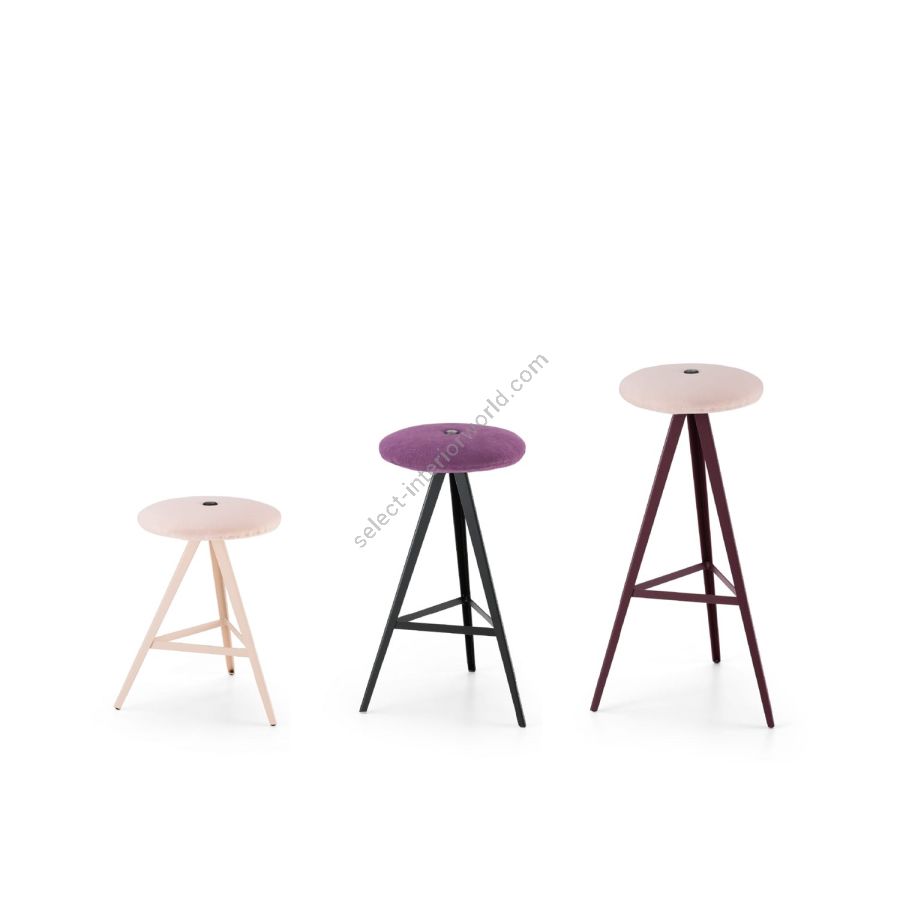 | Description: | Base in painted metal, seat in solid ash, removable upholstered cover in fabric. Available in three heights. |