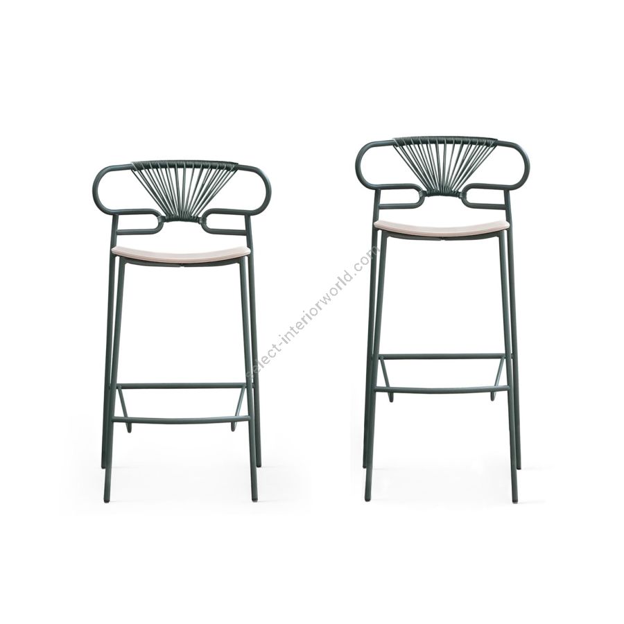 The Genoa chair collection, by talented young designer Cesare Ehr, featuring a stool and a chair with armrests, is also available in an outdoor version. The distinguishing element is the ‘one-line’ backrest, obtained by curving a single metal tube which - with its virtually endless wavy line, also extended to the armrests in this new version - is an elegant addition to every space, bringing a sense of lightness.