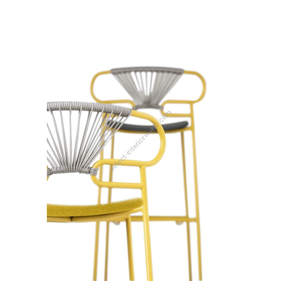 | Description: | Stool with painted metal frame, ash seat, backrest with braided color rope. Available as well with metal frame in chrome shiny, chrome black shiny or brass shiny. |