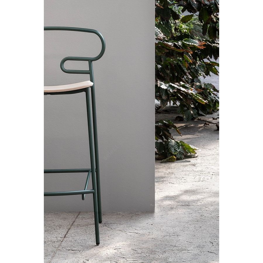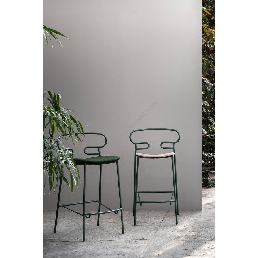 The Genoa chair collection, by talented young designer Cesare Ehr, featuring a stool and a chair with armrests, is also available in an outdoor version. The distinguishing element is the ‘one-line’ backrest, obtained by curving a single metal tube which - with its virtually endless wavy line, also extended to the armrests in this new version - is an elegant addition to every space, bringing a sense of lightness.