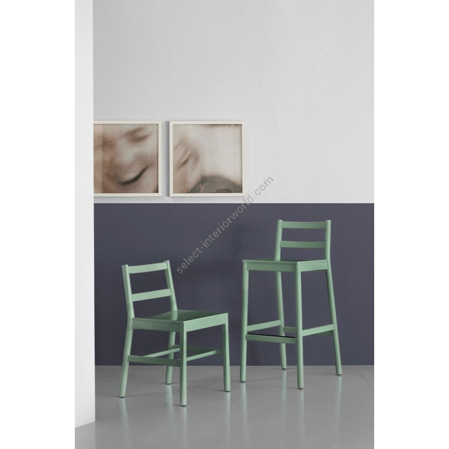 Julie has not only been reinvented with a rope weave backrest but the family is extended to create a spin-off of the chair: a versatile stool, available in two heights, designed in two variants with a plywood beech backrest and woven backrest.