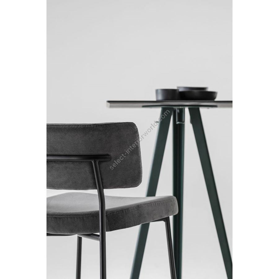 Hints of a Fifties vibe can be glimpsed in the curvature of the backrest - generously padded, like the seat - and in the dynamic, lightweight 4-leg metal rod frame, which becomes bulkier and more retro in the solid ash wooden version.
