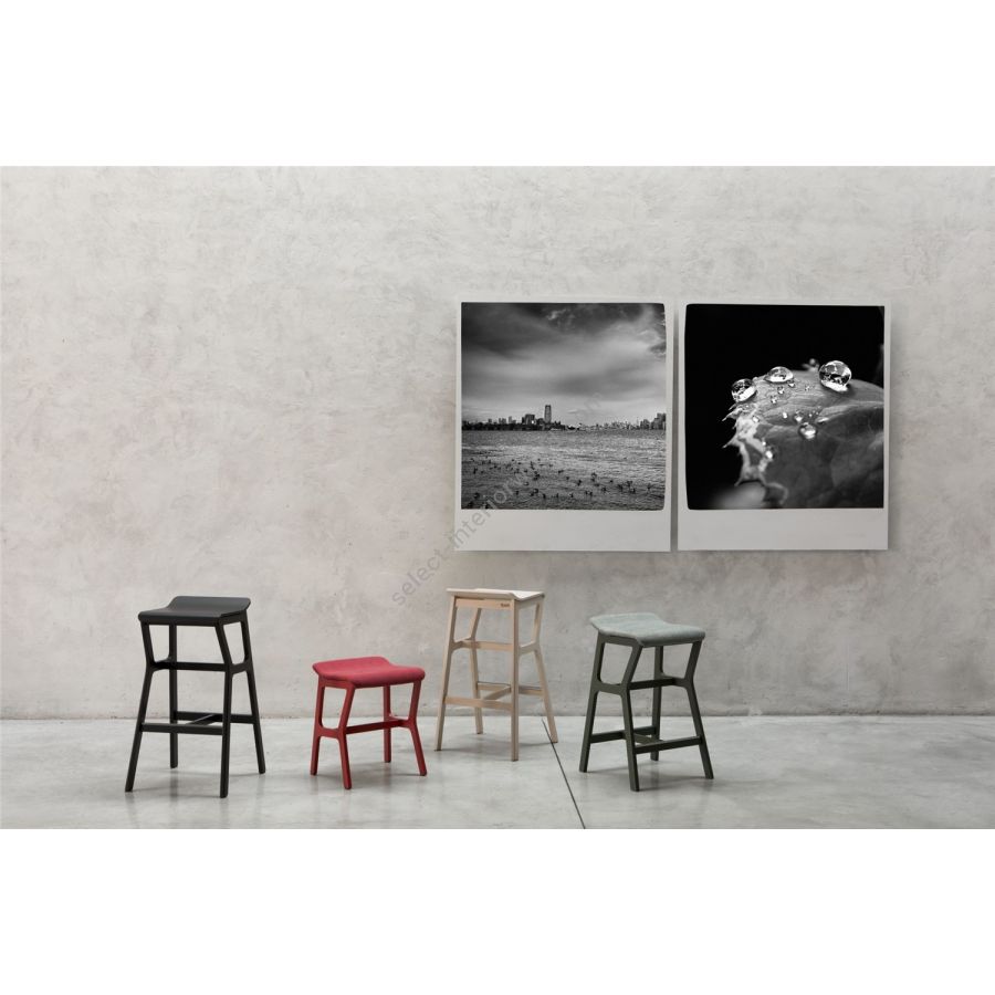 Asymmetrical in design, the Nhino stool seems almost to dance, to move, inviting users to socialise and share. Nhino is available in three different heights - 82, 72 and 53 cm - and is perfect for breakfast in the kitchen, for dinner in the dining room, or for afternoon tea and coffee in the living room. This versatile seat is also suitable for public areas, especially in casual venues such as lounge bars or fast food joints. The highest version is idea for an aperitif at the bar counter.The frame, with rounded edges, is in beech, while the seat is in beech plywood. Nhino comes in various finishes: bleached, stained in natural tones such as cocoa or tin grey, or lacquered in bright colours such as red, yellow, orange, and many more besides.