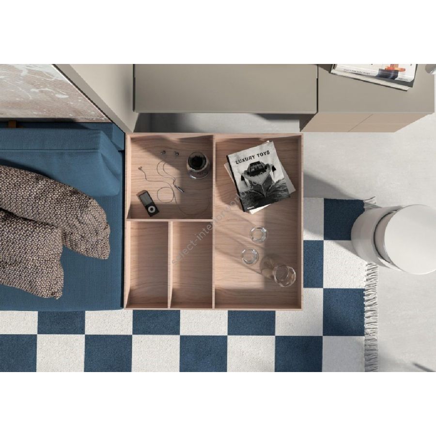 The backs of the sofa and the seat cushions are completely flippable and all the upper structure is reclining. In this way, the sofa can be placed in front of the Block System and Alcova Light.