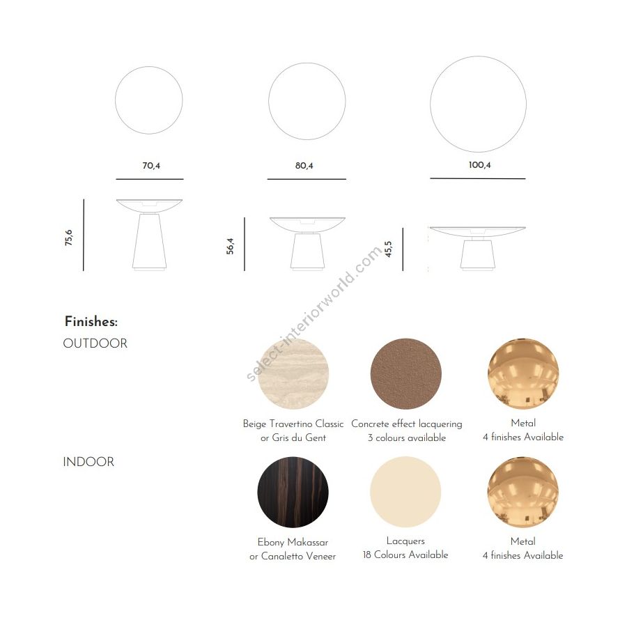 For the indoor version Eclisse features a veneer top and a base lacquered