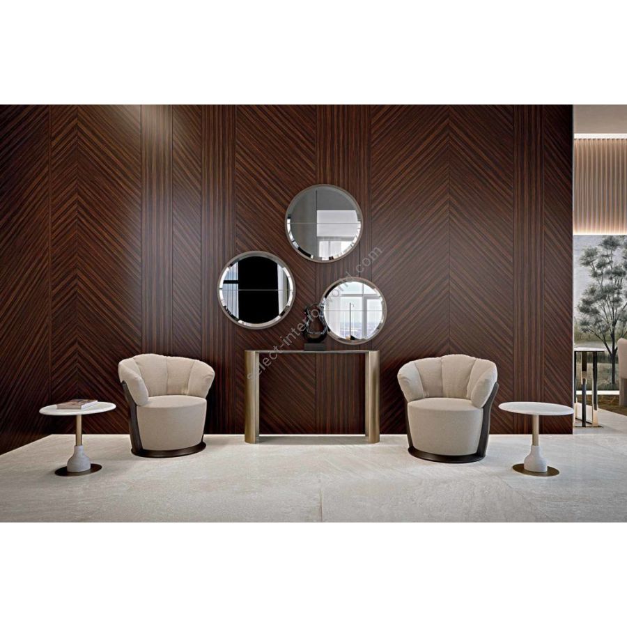 PASSEPARTOUT is a padded armchair with strong and comfortable shapes. Its design and solid structure give it a glamorous look, suitable for a modern and contemporary living room. This armchair, with its refined character fills the environment with personality and taste.