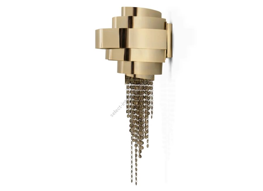 The Guggenheim Wall Lamp is a stunning addition to the family of awe-inspiring art. The design is a magnificent combination of gold-plated brass and crystals that promises to dazzle everyone in the room. This avant-garde creation will inspire your projects, forging the most exquisite and elegant ambiance. Add a touch of sophistication to your interior with this remarkable wall light.