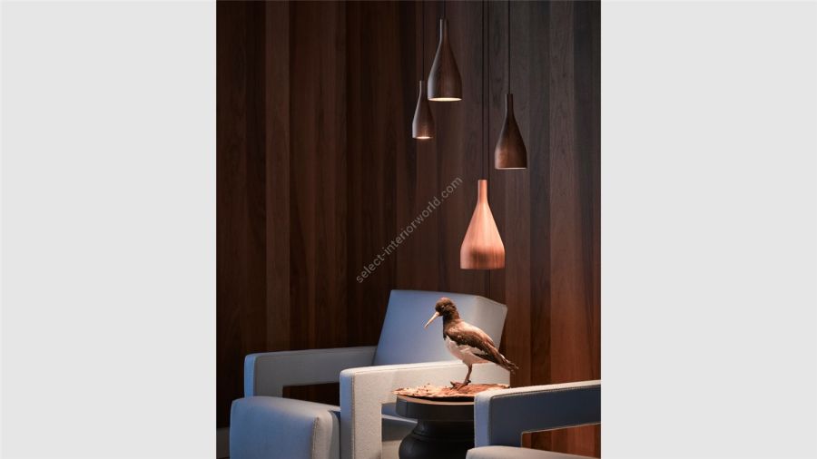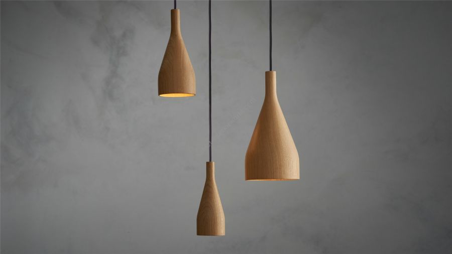 Timber is available in three different sizes (S, M and L) which give a pleasant effect when hung together in a cluster. But they also work deftly when aligned in a row, above a bar or dining table. Thanks to the simple and recognisable bottle shape, the natural look and the purposeful light, the Timber collection meets many needs in both private and project-based